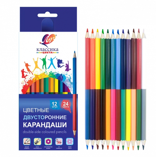 Карандаши цветные 24 цвета 12 штук двухстронние "Классика", шестигранные