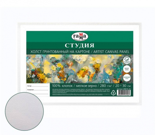 Холст на картоне 30х40 см "Студия", 100% хлопок, мелкое зерно