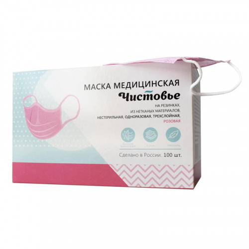 Маски медицинские применяются в стационарных и амбулаторных лечебно-профилактических учреждениях, общественных организациях, в транспорте, а также в домашних условиях. Предназначены для защиты органов дыхания медработников и пациентов от попадания в дыхательные пути присутствующих в воздухе микроорганизмов. Трехслойный материал обеспечивает максимальный уровень фильтрации. Первый и третий слои масок изготовлены из спанбонда, средний (фильтр) из SMS. Размер маски: 17.5×9.5 см. Маски не препятствуют свободному дыханию. Изделие имеет РЗН № 2020/9888 от 18.02.2021 года.