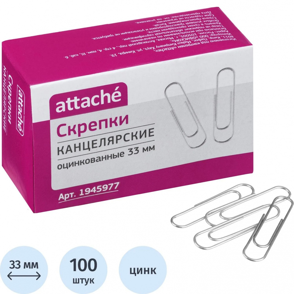 Скрепки 33 мм Attache оцинкованные, негофрированные (100 шт)