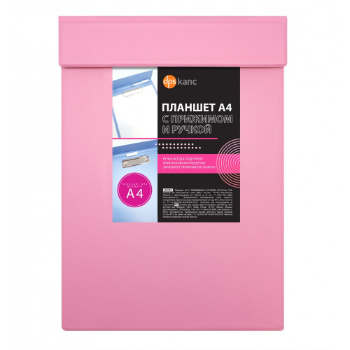 Планшет А4 с прижимом, с ручкой, светло-розовый