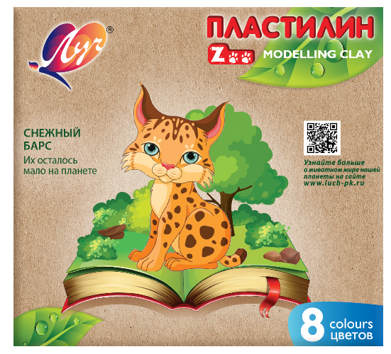 Пластилин 08 цветов "ZOO", картонный вкладыш