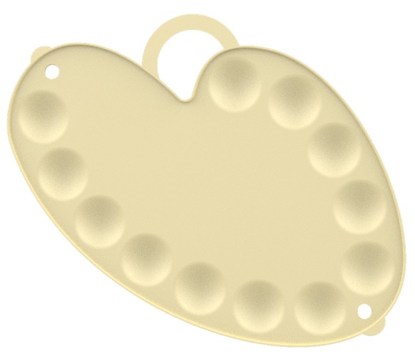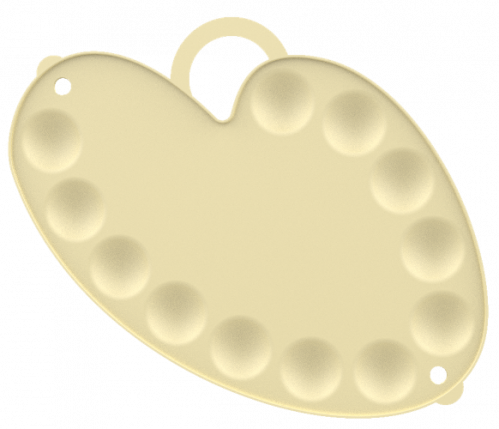Пластмассовую палитру легко держать в руке, она имеет отверстие для большого пальца руки, 12 круглых ячеек ячейки для красок и площадку для их смешивания, что даёт художнику большую свободу для творчества.
