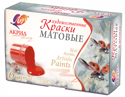 Матовые акриловые краски предназначены для художественных, декоративных и дизайнерских работ. Являются универсальным материалом для творчества. Красками можно работать практически на любой поверхности (бумага, картон, грунтованный холст, дерево, металл, кожа и других).