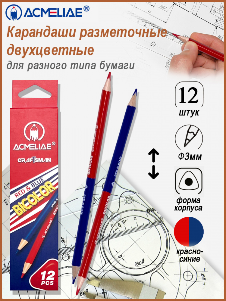 Карандаш двухцветный разметочный красно-синий ACMELIAE