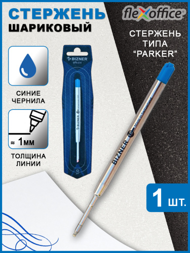 Стержень шариковый 98 мм Flexoffice, 1мм синий, объемный металлический для ручек типа Parker