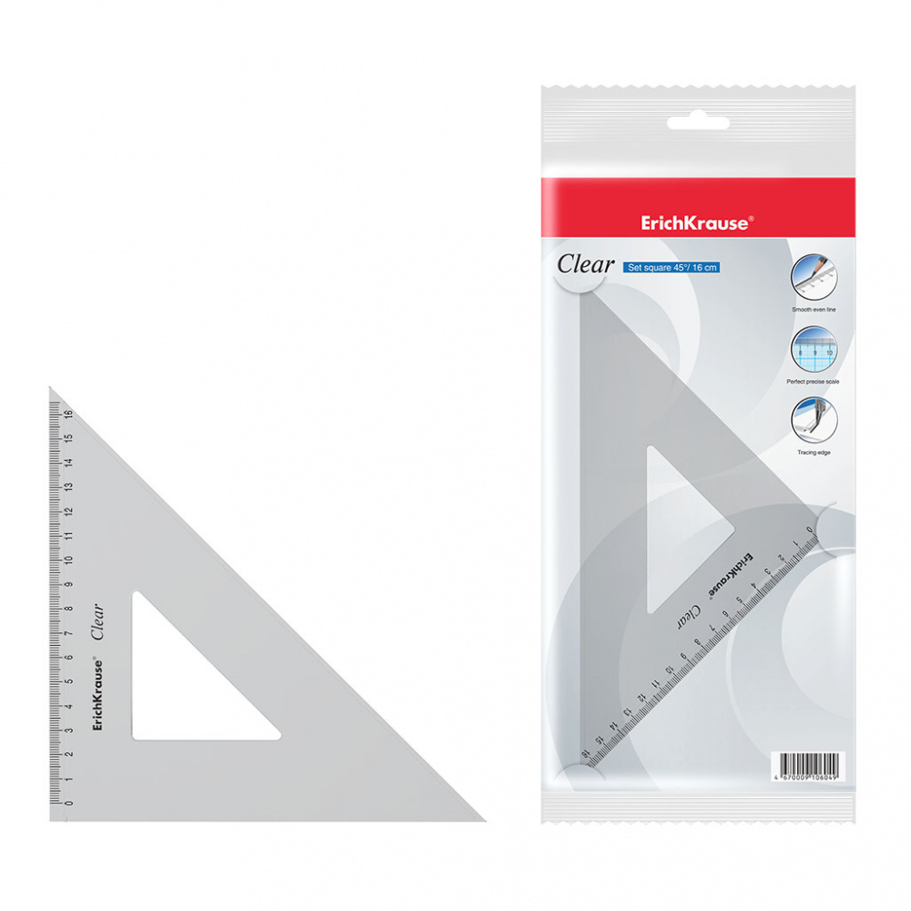 Угольник из высококачественного прозрачного пластика с краями для черчения тушью. Точная миллиметровая шкала; длина разметки составляет 16 см.